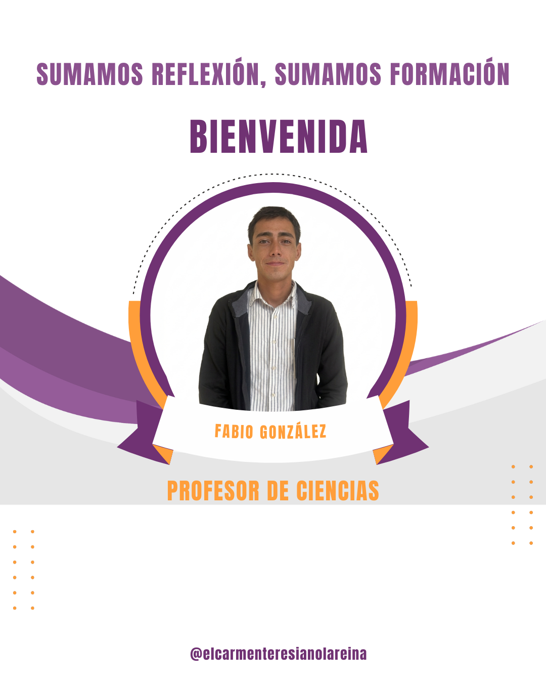 En nuestro colegio, El Carmen Teresiano La Reina, estamos encantados de recibir a los nuevos integrantes de nuestro equipo docente, quienes se unen con el objetivo de contribuir al desarrollo académico y personal de nuestros estudiantes. Este año, los nuevos profesores se suman a nuestra comunidad educativa con un fuerte compromiso por ofrecer una educación de calidad y un enfoque pedagógico cercano y accesible.